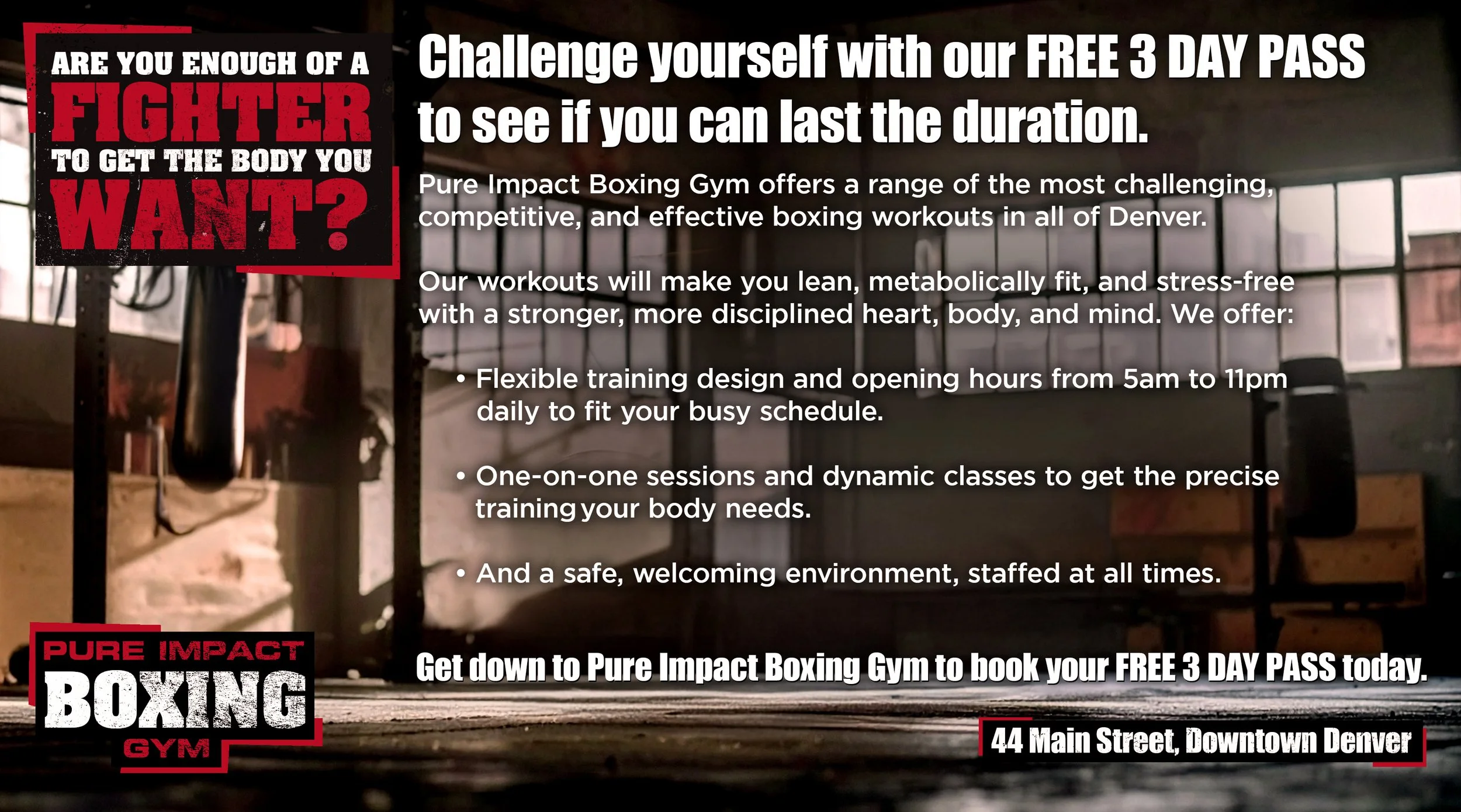 Pure Impact Boxing Gym were looking for a direct mail advertisement to entice new fitness conscious clientele into the gym with a free three-day pass.