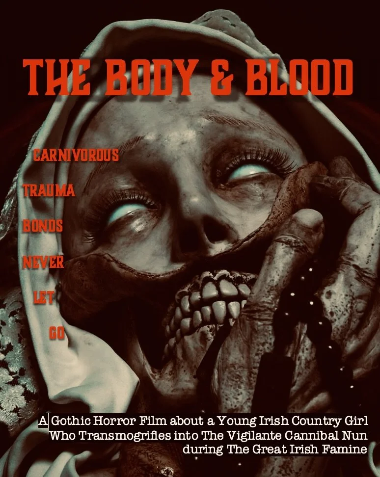 MAGGIE MURTAGH, a middle-class abused country girl, transmogrifies into The Vigilante Cannibal Nun, after going on hunger strike during The Great Irish Famine. She eats the colonisers and gives their spoils to the starving, until she discovers that she is the living dead. Then she hunts down her brutal aunt, the root cause of her abuse.